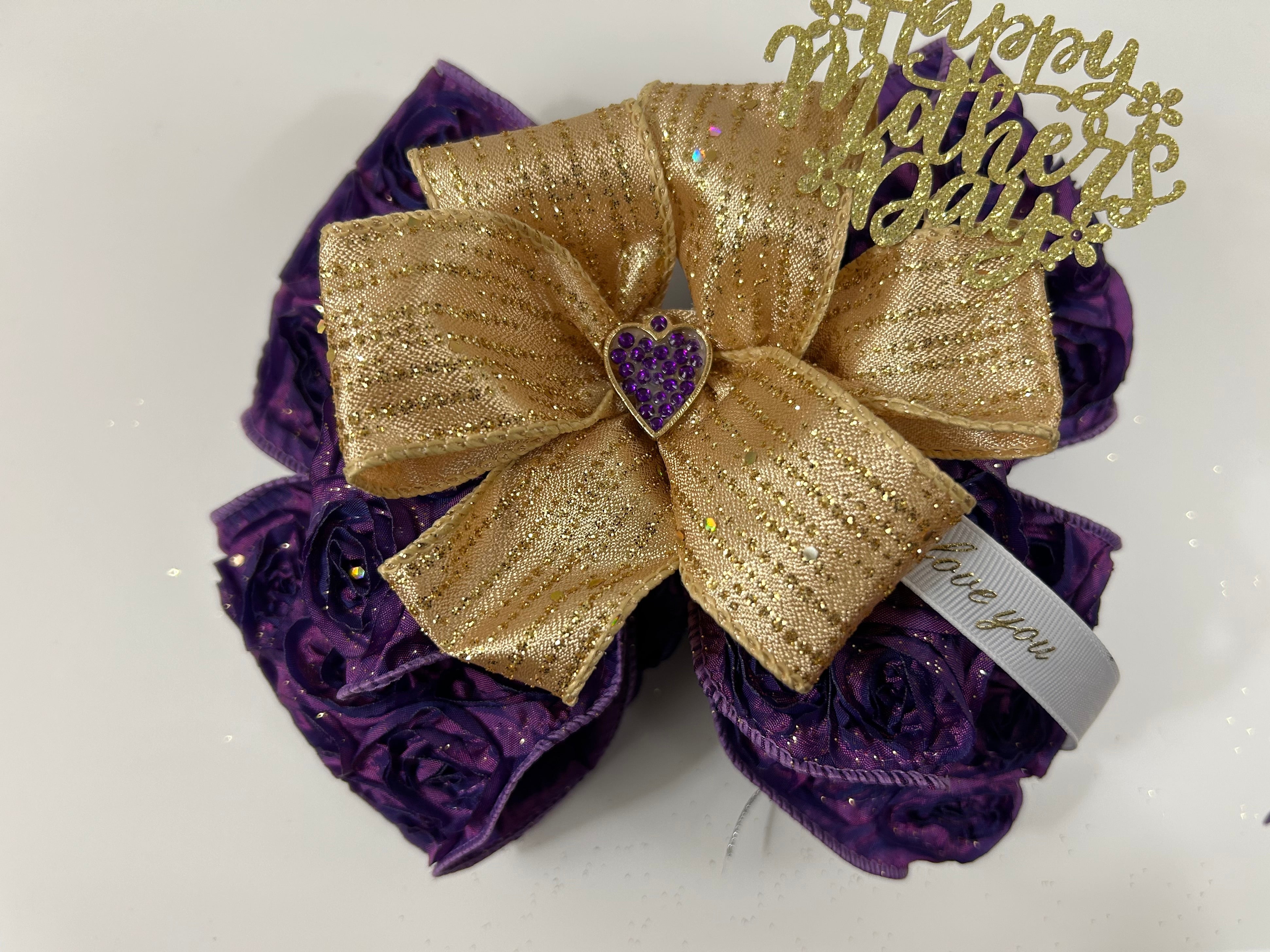 Adorned crafted bows are made for special occasions and can be used to wrap gifts, attach to flower arrangements, or serve as decorations.